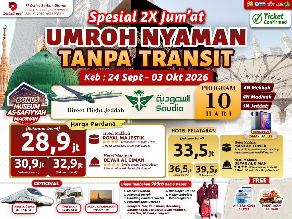 UMRAH NYAMAN TANPA TRANSIT 24 SEPTEMBER 2026 ⭐⭐⭐⭐